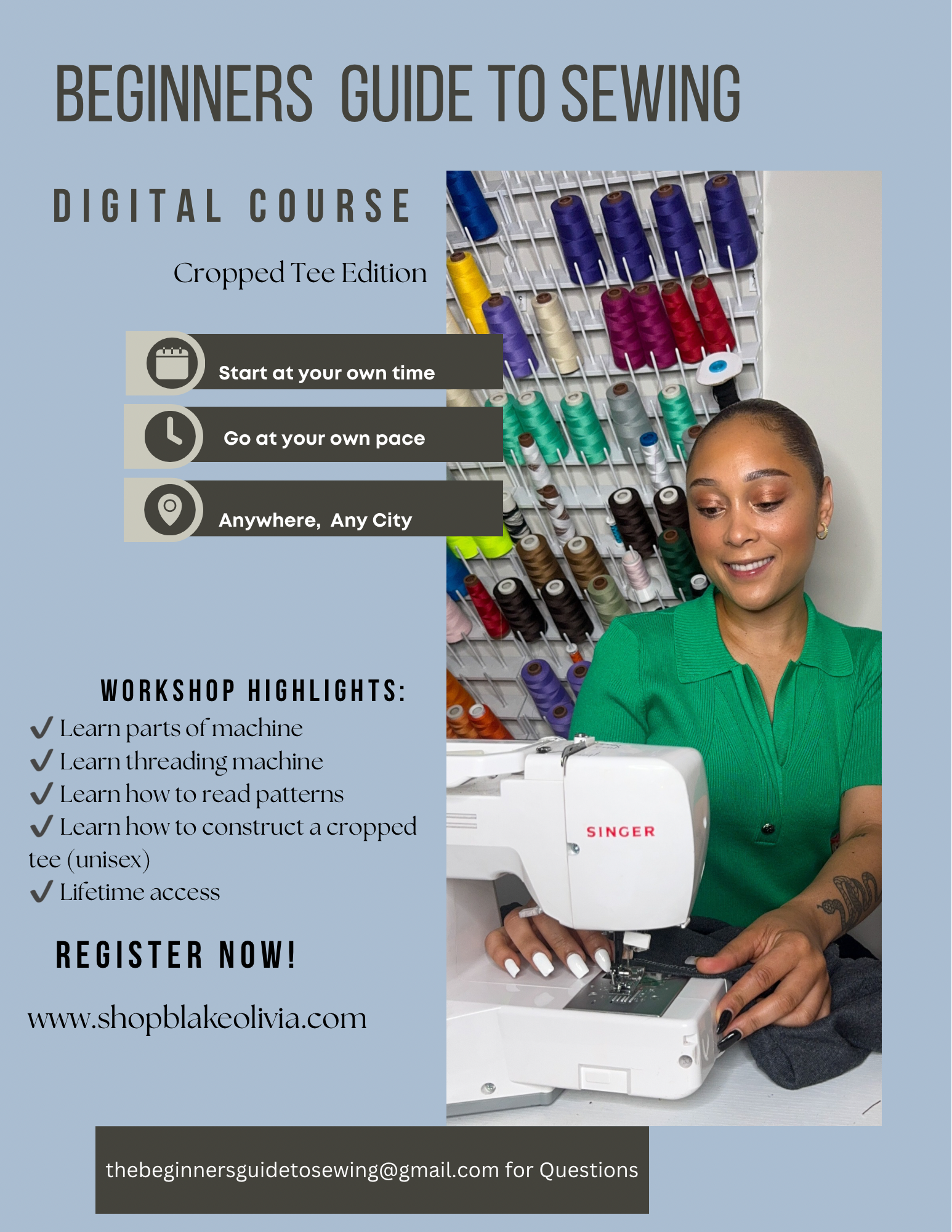 The course also introduces students to reading and interpreting sewing patterns, understanding pattern symbols and instructions, and selecting appropriate fabric and notions. By the end of the course, each student will complete a simple oversized cropped tee.